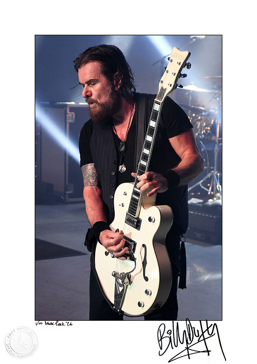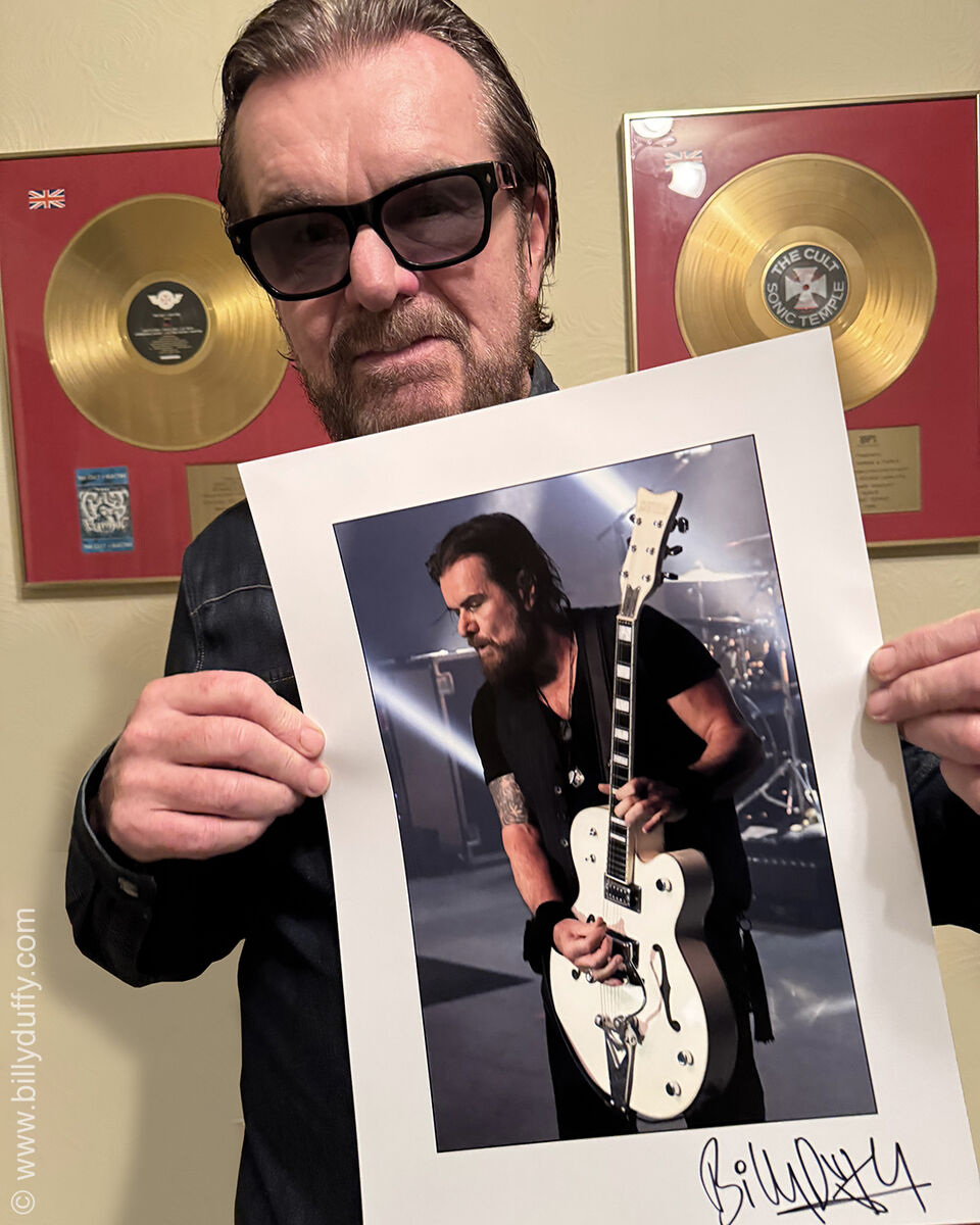For authentication the photo also features an embossed 'Billy Duffy Official Merchandise' logo.